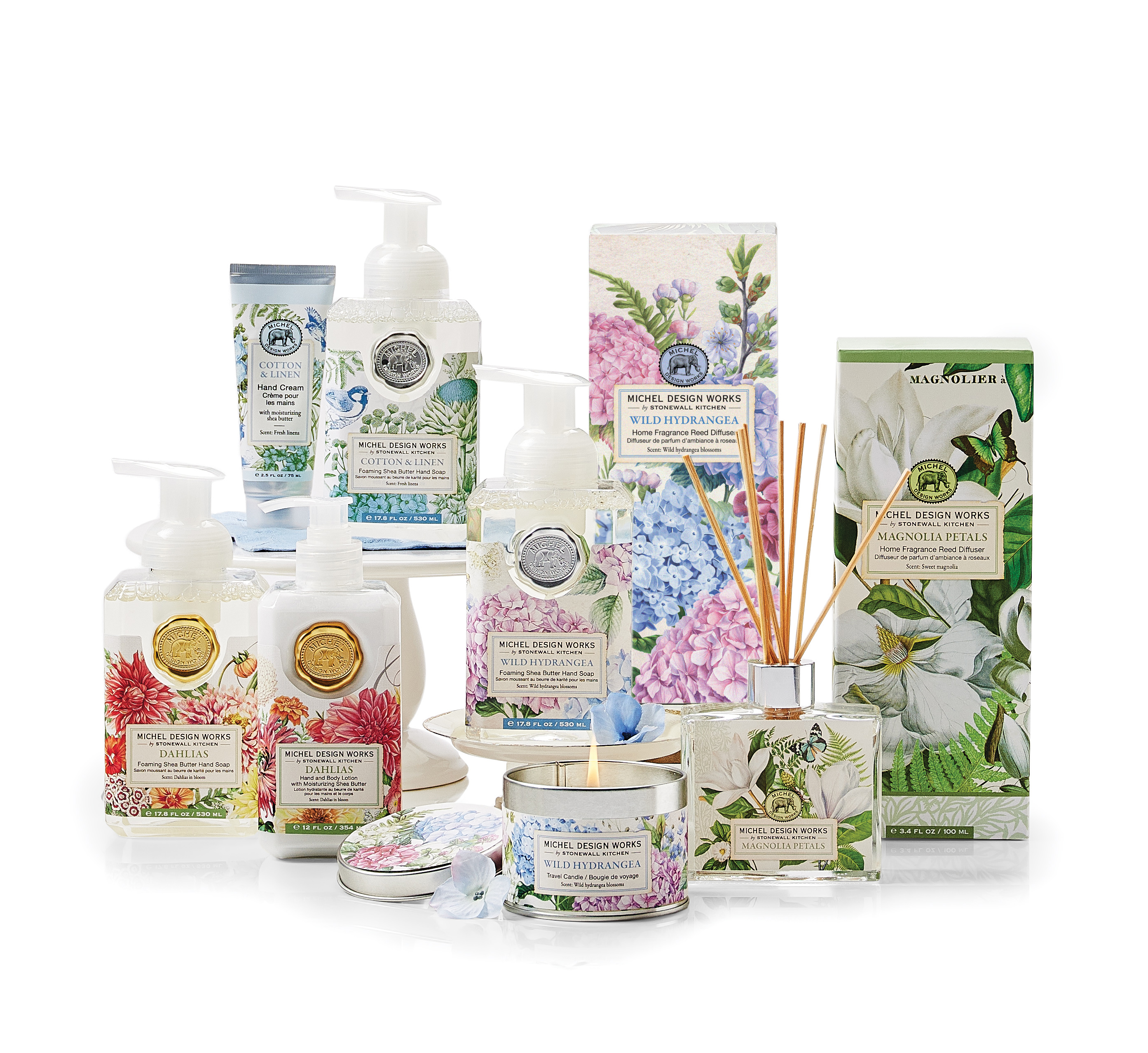 Na feira, apresentamos os produtos de nossas três marcas, Voluspa, Michel Design Works e Huras Family.